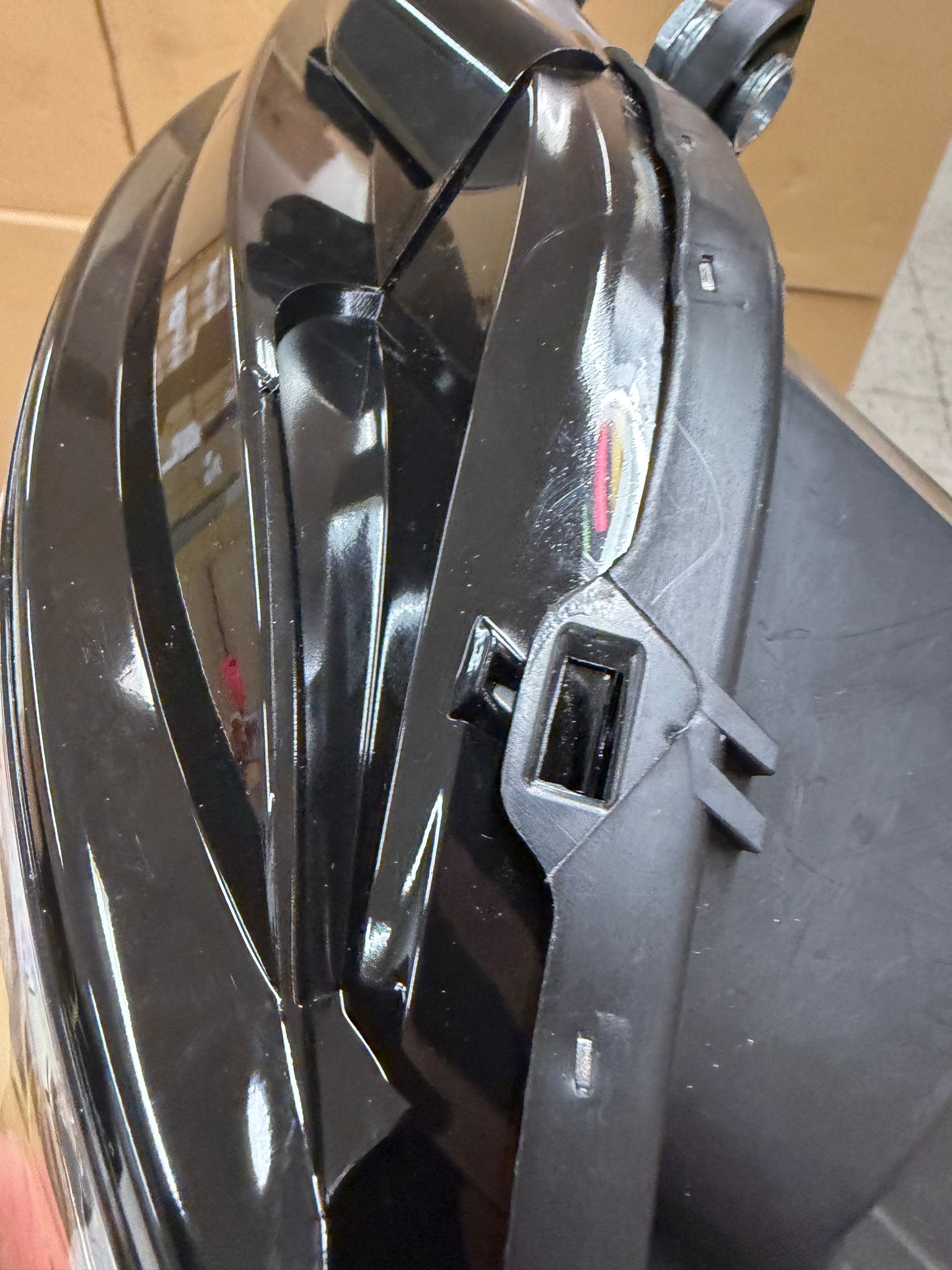 - Linker Scheinwerfer hat einen kleinen Riss hinten im Gehäuse, der aber nicht undicht ist, das kann man problemlos zum Beispiel mit einem Schweißnaht -Kleber kleben, oder so belassen! Könnte man sicherlich auch mit einem speziellen GewebeBand abdichten.