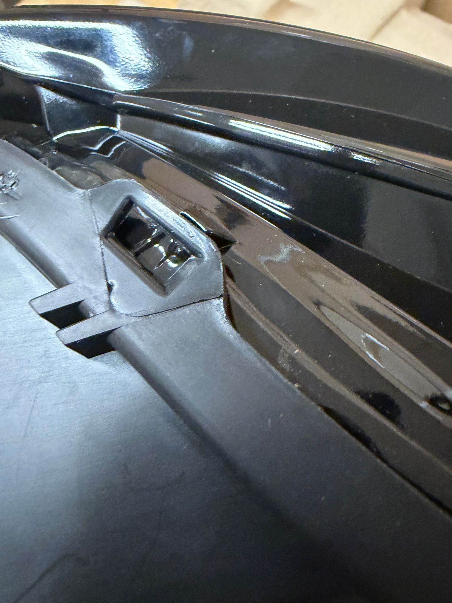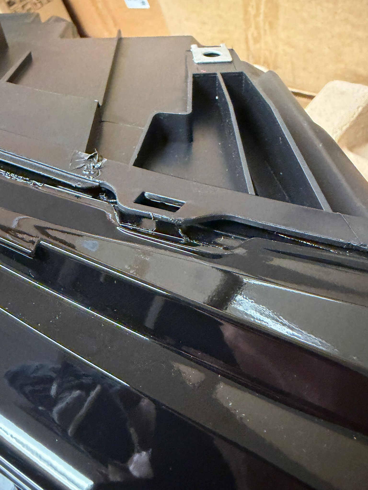 Dort sind oben zum Teil die Halterungen nicht richtig eingepresst in den Übergang, der Scheinwerfer ist natürlich komplett dicht, aber leider etwas schief verklebt (fällt bei Montage nicht auf).