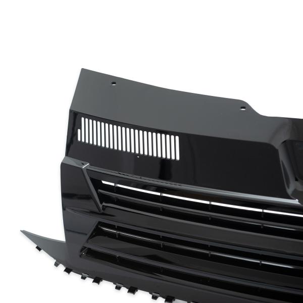 Paket-Upgrade Design Kühlergrill Schwarz clean ohne Emblem + Set Gitter Grill Einsatz Stoßstange vorne unten Hochglanz für Volkswagen T6 15-19 - auch Sportline