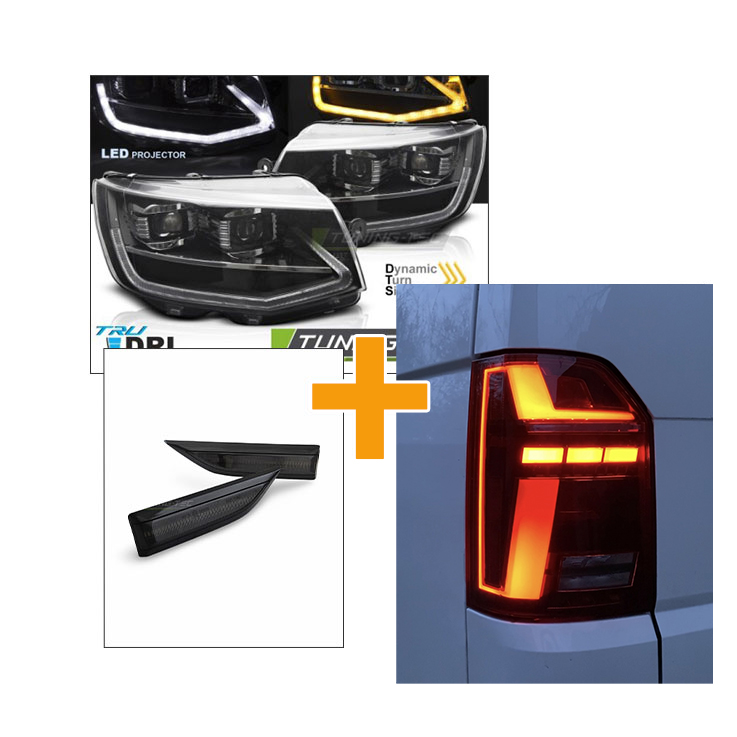 + Voll LED Lightbar Rückleuchten im T6.1-Design mit animierter Startsequenz und dynamischem Blinker für VW T6