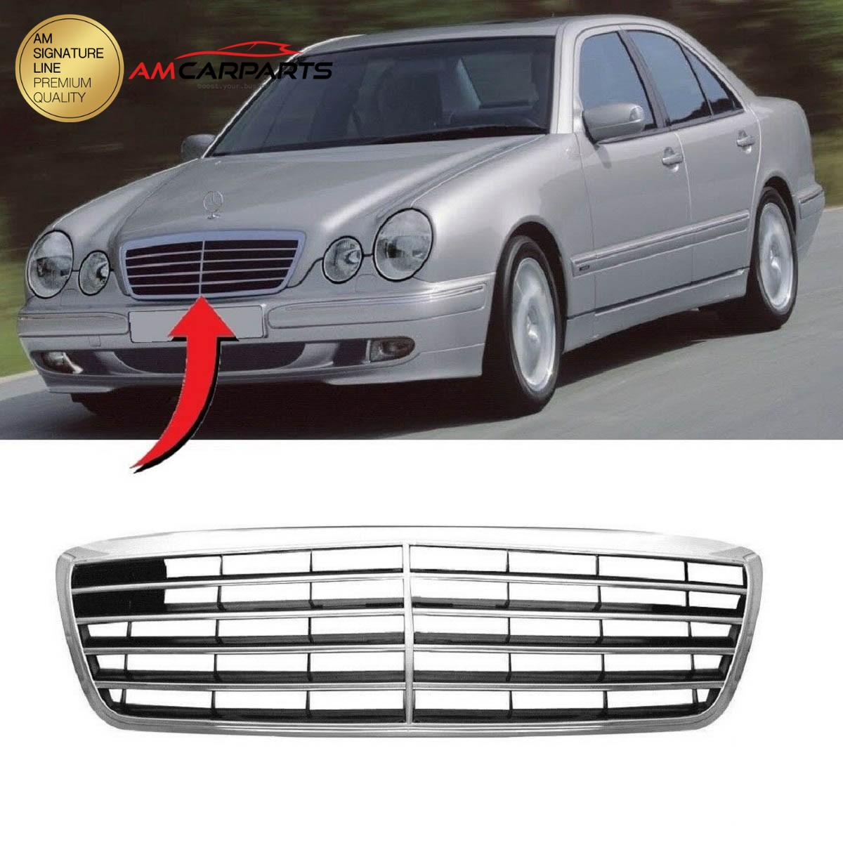 Upgrade Design Kühlergrill / Sportgrill für Mercedes Benz E-Klasse W210 / S210 Facelift 99-02 Hochglanz schwarz / chrom