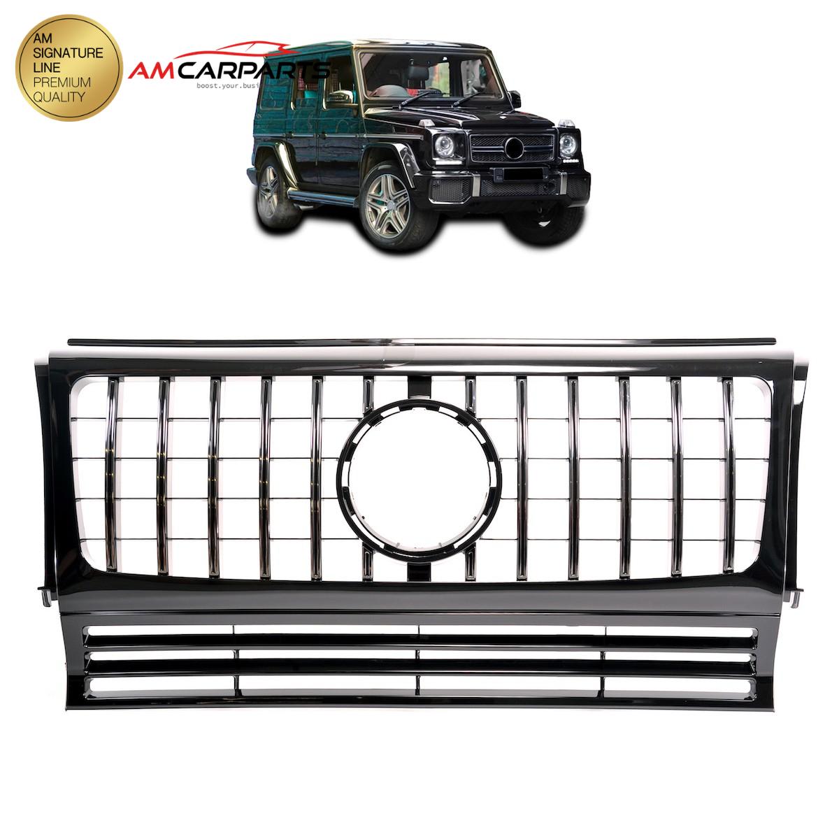 Upgrade Design Kühlergrill / Sportgrill für Mercedes G-Klasse W463 89-18 Hochglanz schwarz / chrom