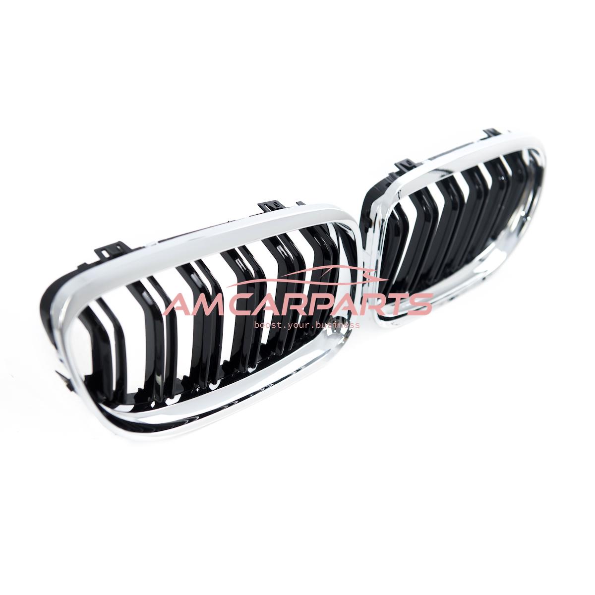 Upgrade Design Kühlergrill / Sportgrill passend für BMW 3er E90 / E91 Facelift 08-11 Hochglanz schwarz / chrom
