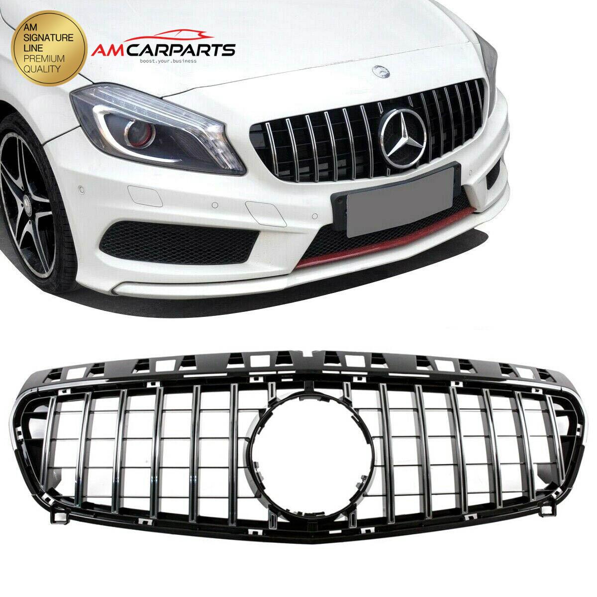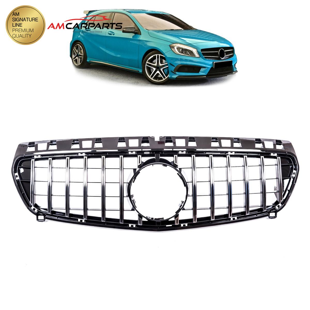 Upgrade Design Kühlergrill / Sportgrill passend für Mercedes Benz A-Klasse W176 Vor-Facelift 12-15 Hochglanz schwarz / chrom