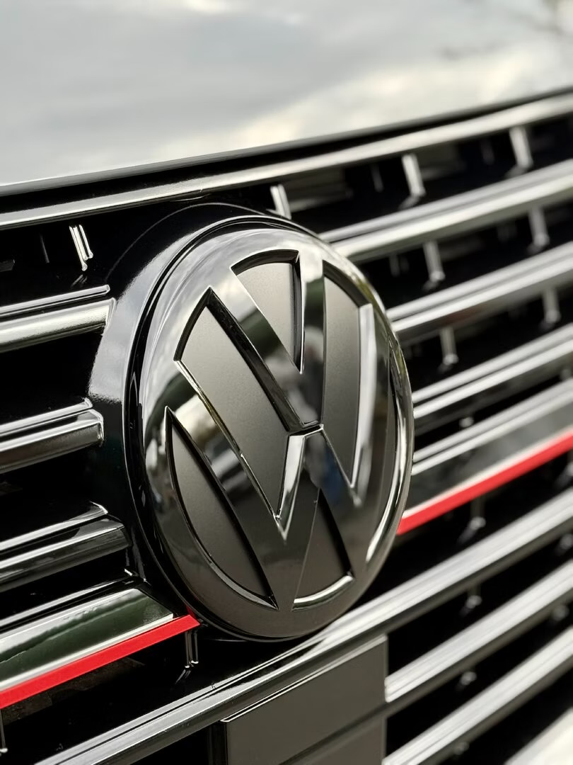 Das vordere Emblem verleiht dem Kühlergrill das gewisse Etwas, während das hintere VW Zeichen in exklusivem Schwarz der Heckklappe zu beeindruckender Eleganz verhilft.