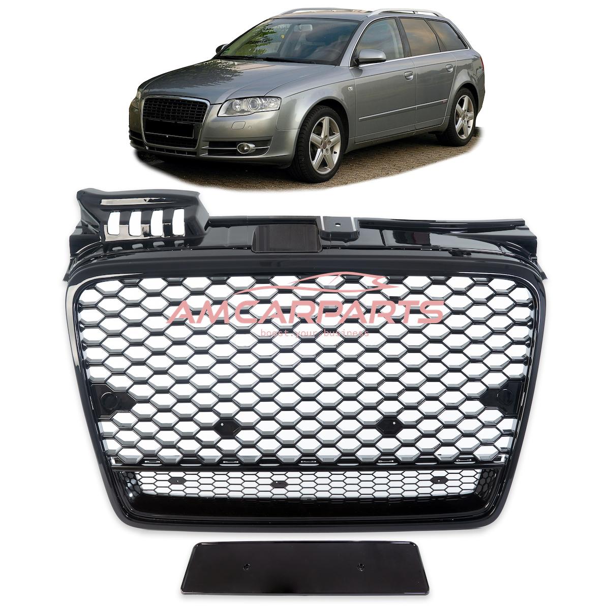 Upgrade "Plus" Sportgrill / Kühlergrill für Audi A4 B7 8E 04-07 Hochglanz Schwarz in Wabendesign