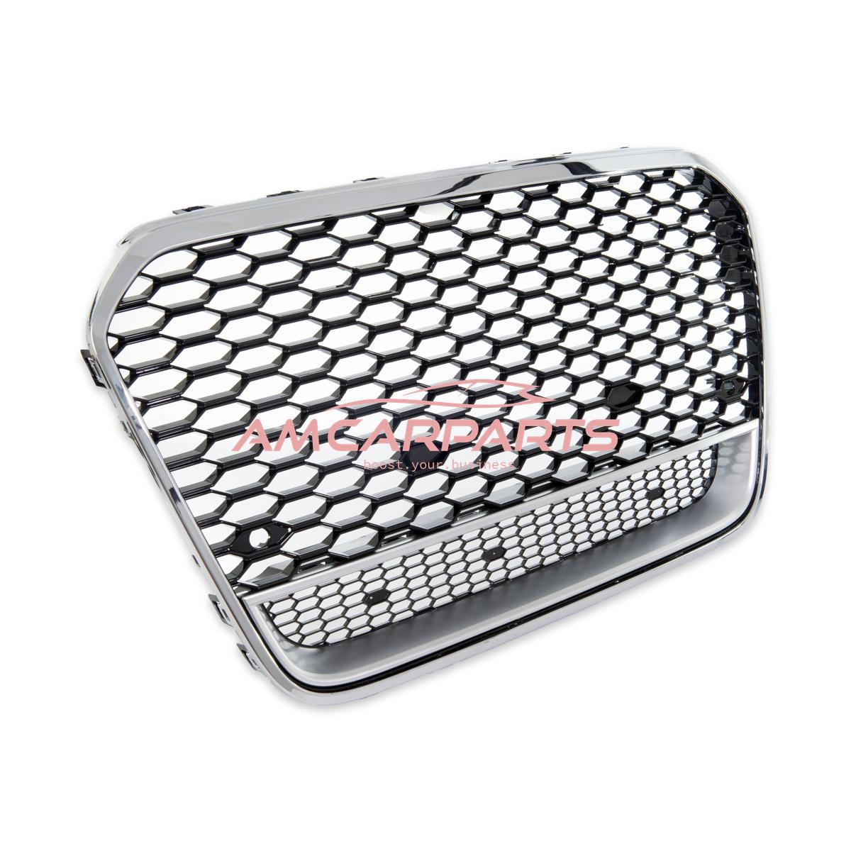 Upgrade "Plus" Sportgrill / Kühlergrill für Audi A6 C7 4G 11-14 Hochglanz Schwarz / Matt Silber / Chrom in Wabendesign