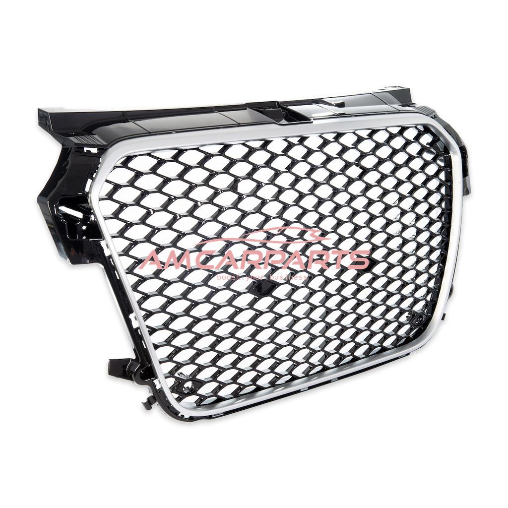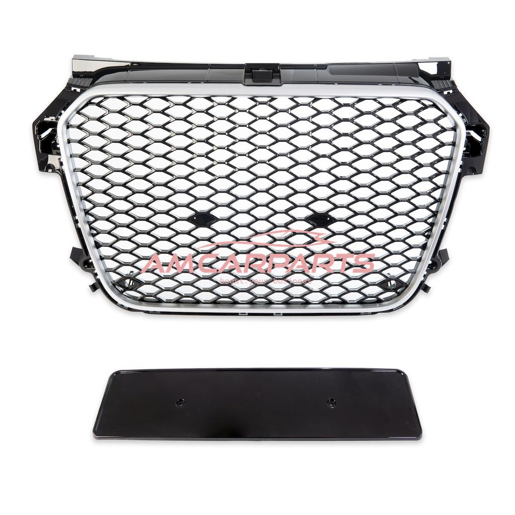 Upgrade Sportgrill / Kühlergrill für Audi A1 8X 10-14 Hochglanz Schwarz / Silber in Wabendesign