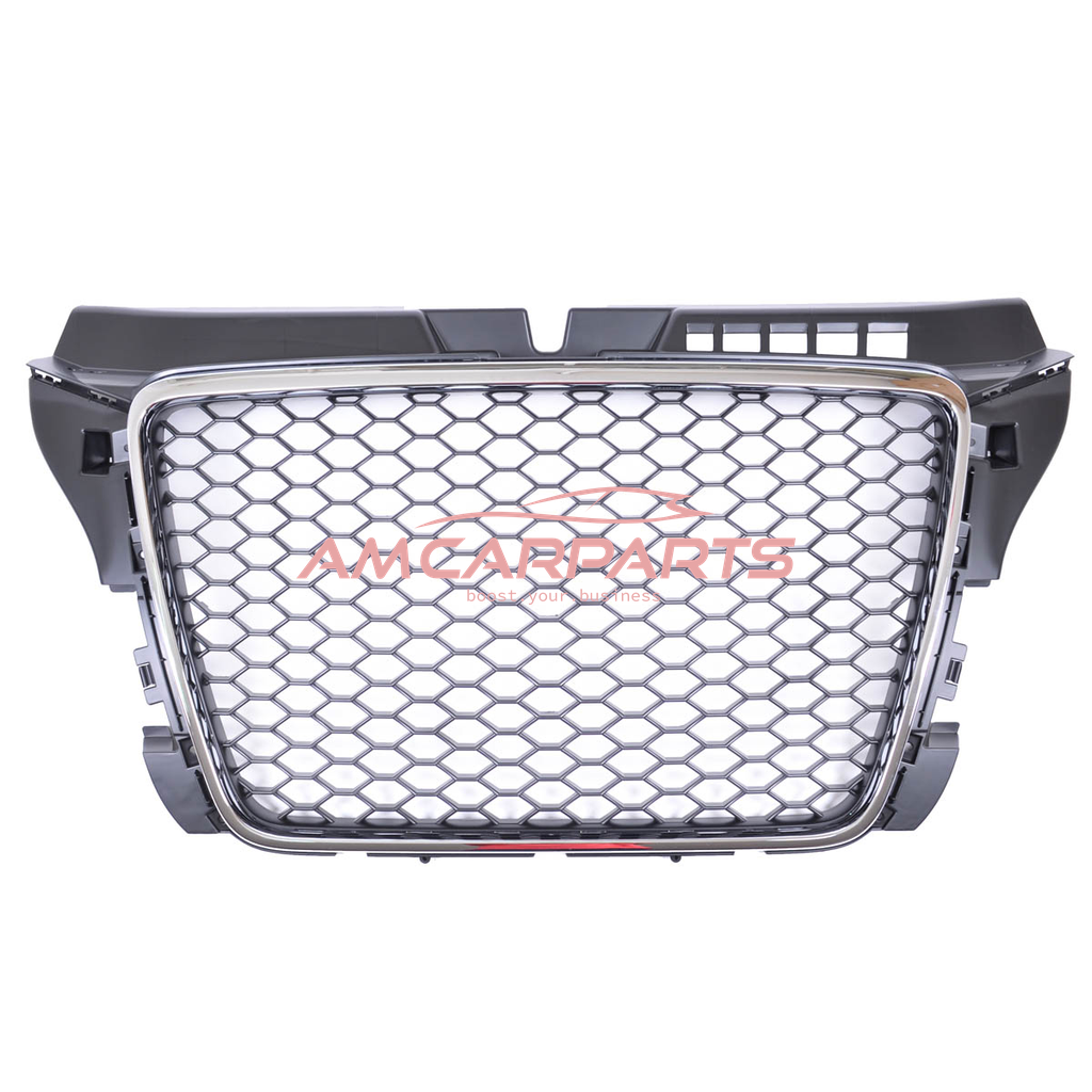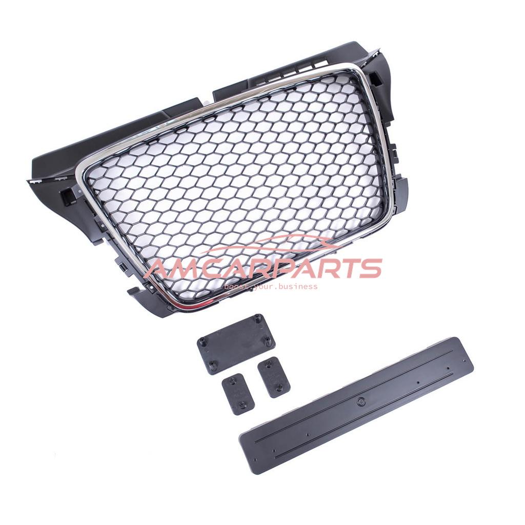 Upgrade Sportgrill / Kühlergrill für Audi A3 8P Facelift 08-12 Hochglanz Schwarz / Chrom in Wabendesign