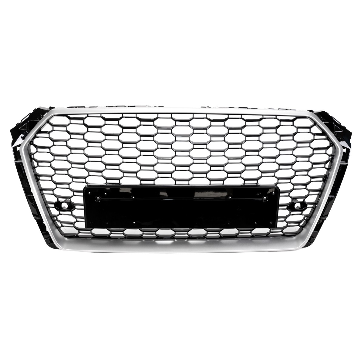 Upgrade Sportgrill / Kühlergrill für Audi A4 B9 8W 15-19 Hochglanz Schwarz / Matt Silber in Wabendesign