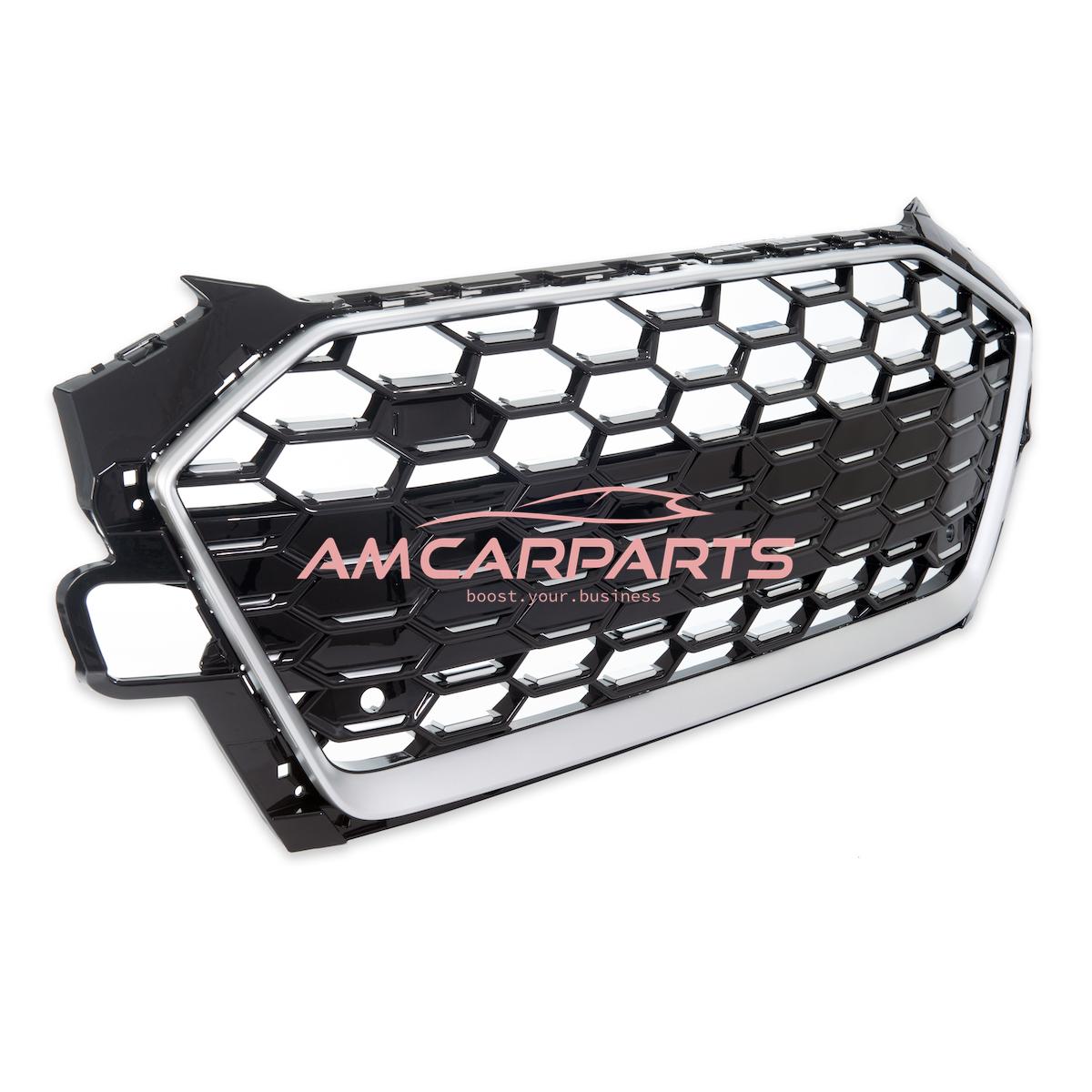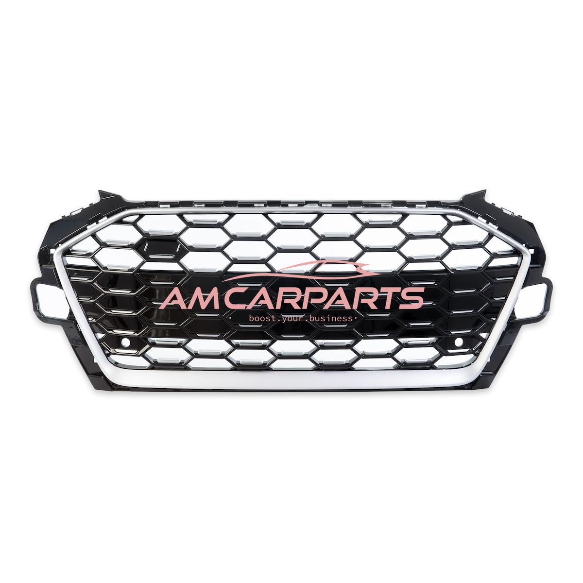 Upgrade Sportgrill / Kühlergrill für Audi A4 B9 8W Facelift 20-24 Hochglanz Schwarz / Matt Silber in Wabendesign