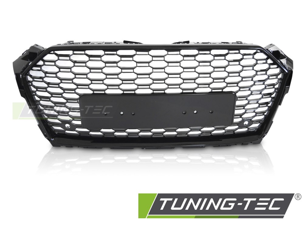 Upgrade Sportgrill / Kühlergrill für Audi A5 F(F5) 16-18 Hochglanz schwarz in Wabendesign mit Kennzeichenrahmen