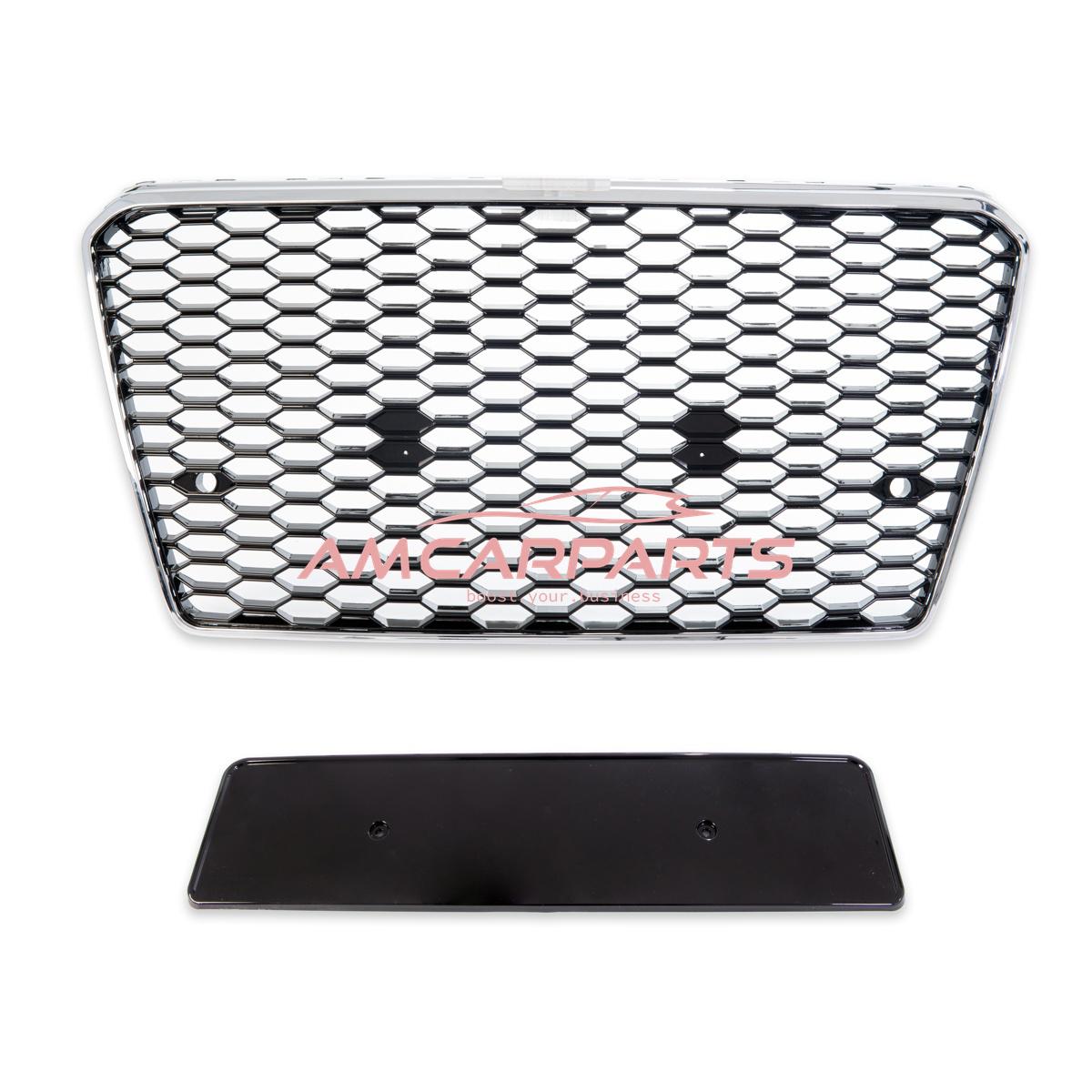 Upgrade Sportgrill / Kühlergrill für Audi A7 4G 10-14 Hochglanz Schwarz / Chrom in Wabendesign