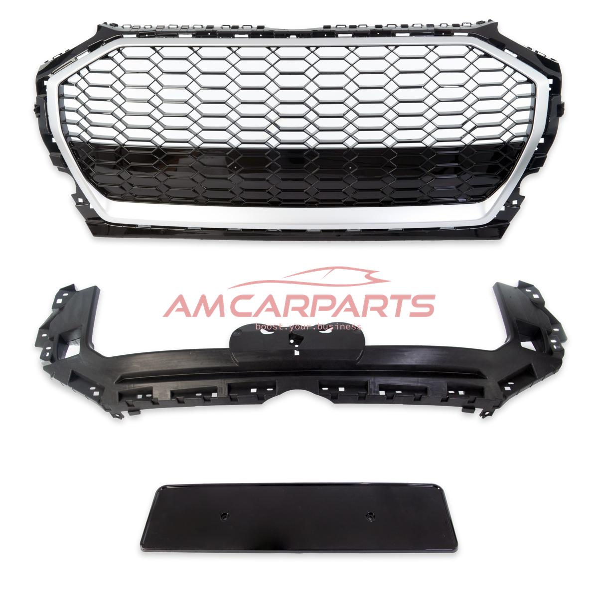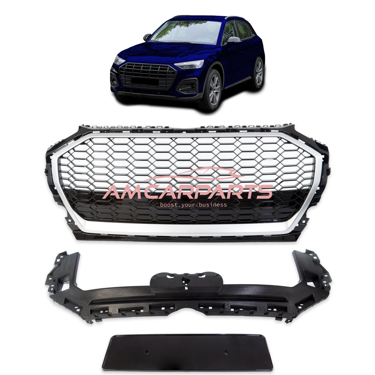 Upgrade Sportgrill / Kühlergrill für Audi Q5 FY Facelift 20+ Hochglanz Schwarz / Matt Silber in Wabendesign