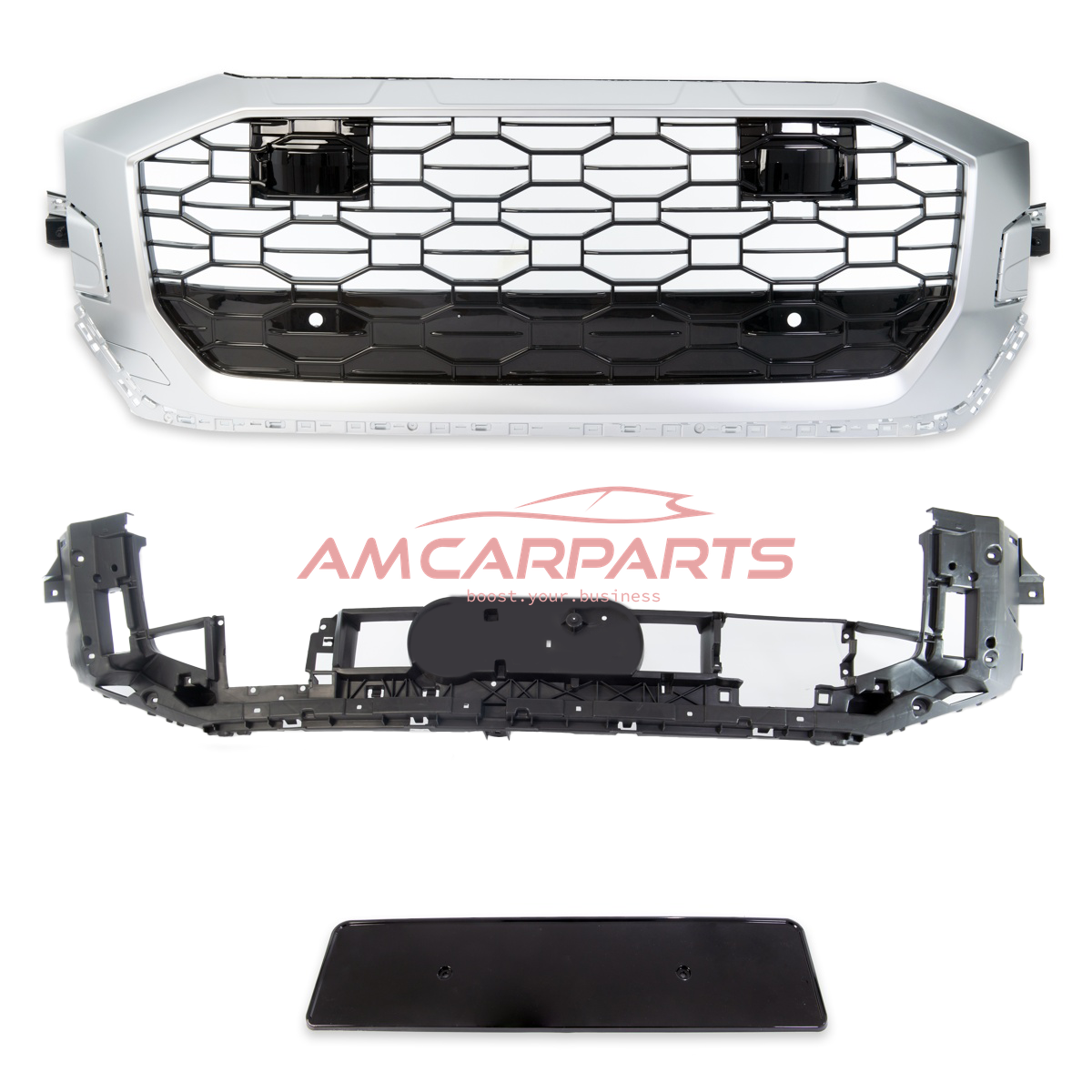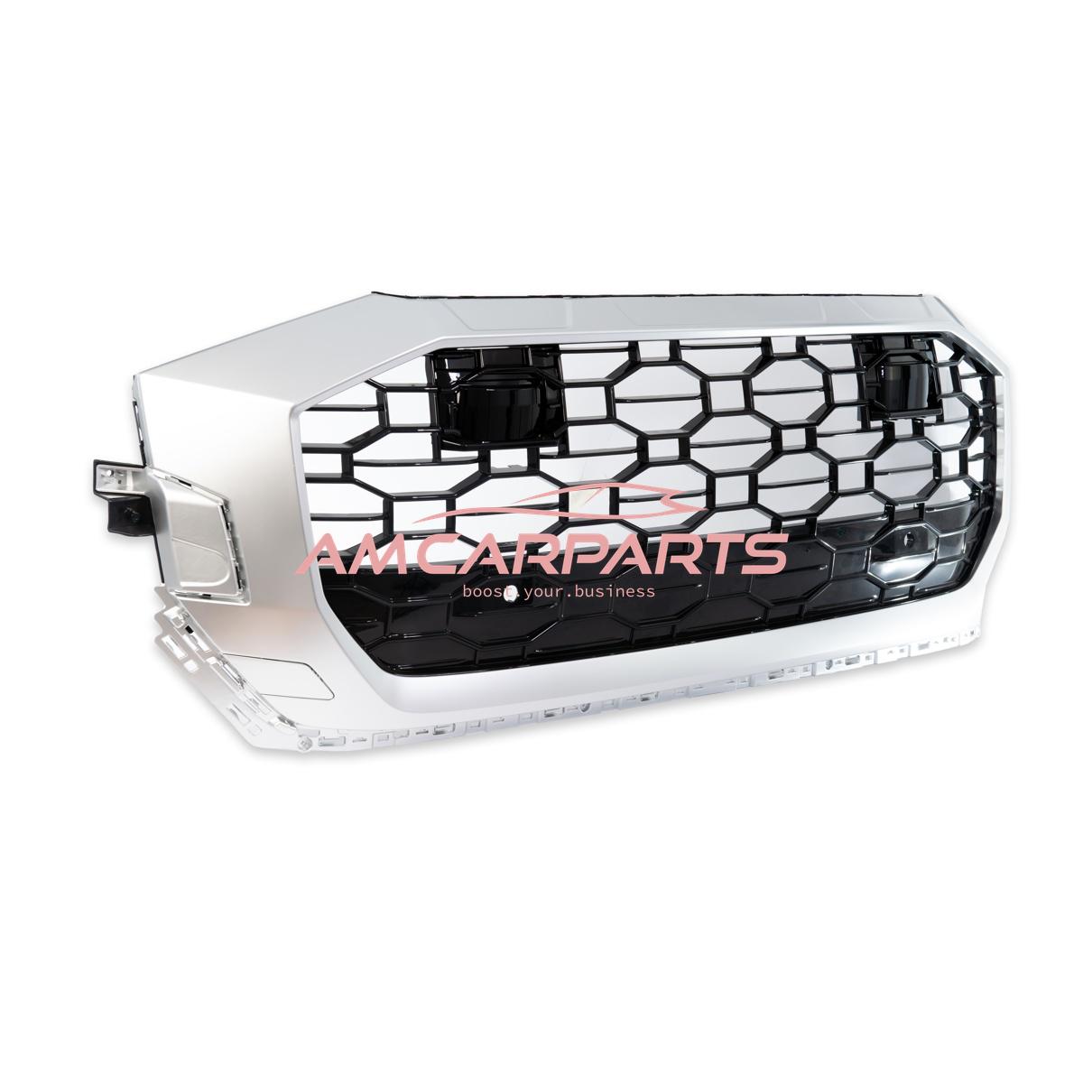 Upgrade Sportgrill / Kühlergrill für Audi Q8 4M 19+ Hochglanz Schwarz / Matt Silber in Wabendesign